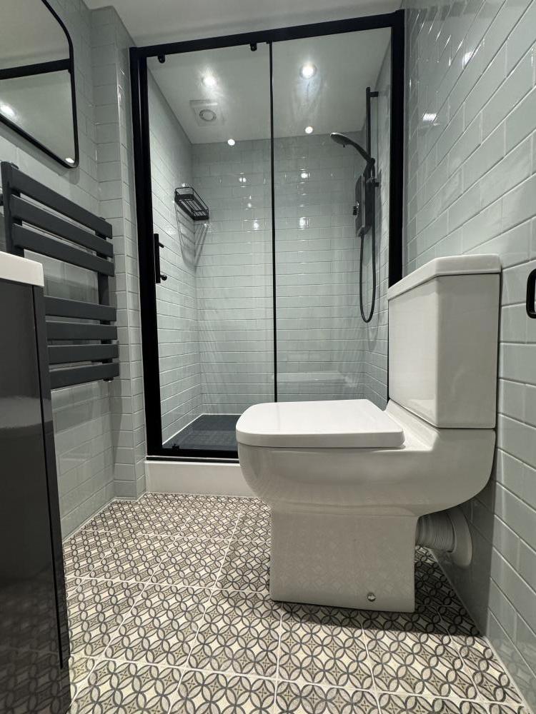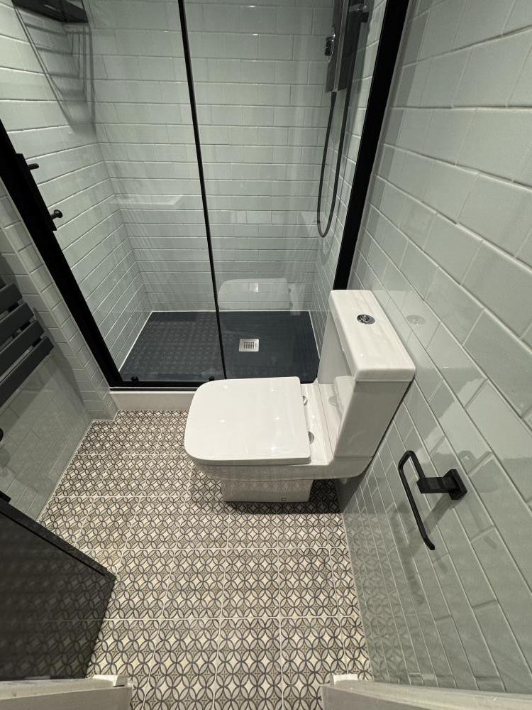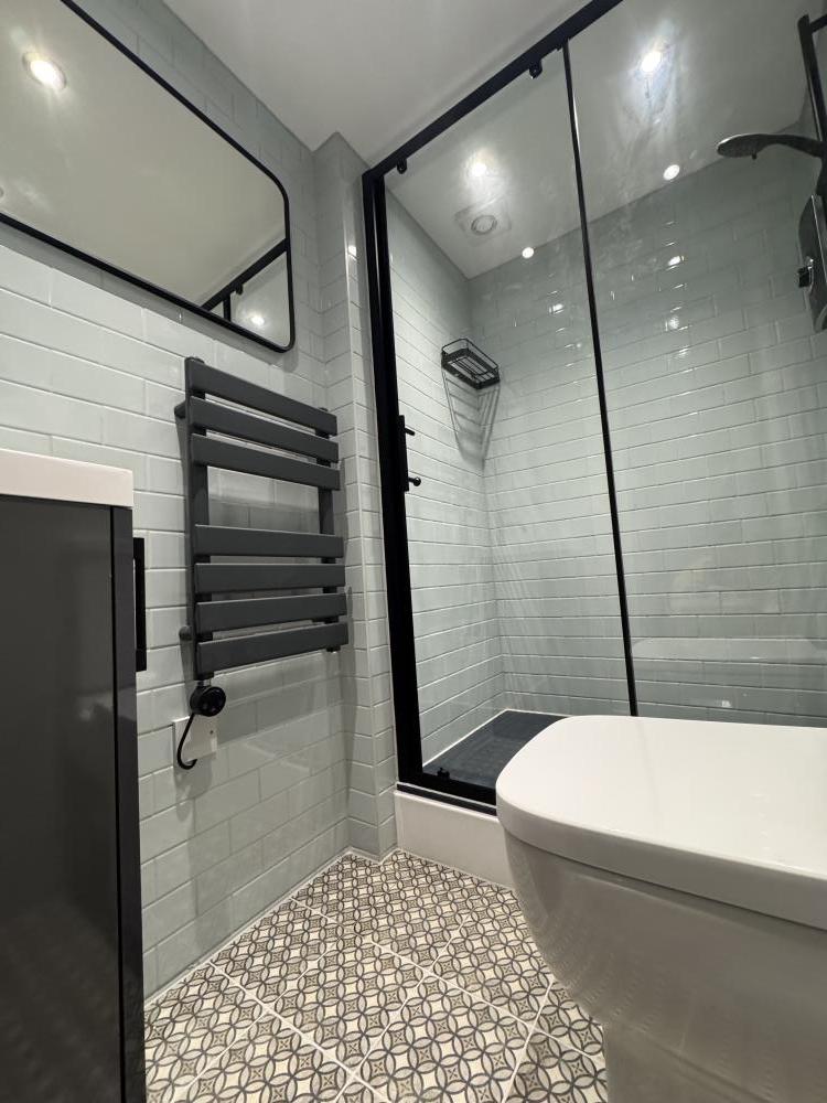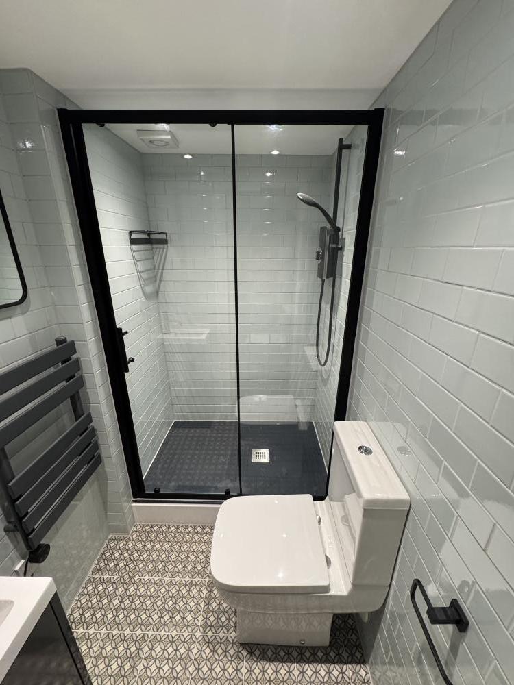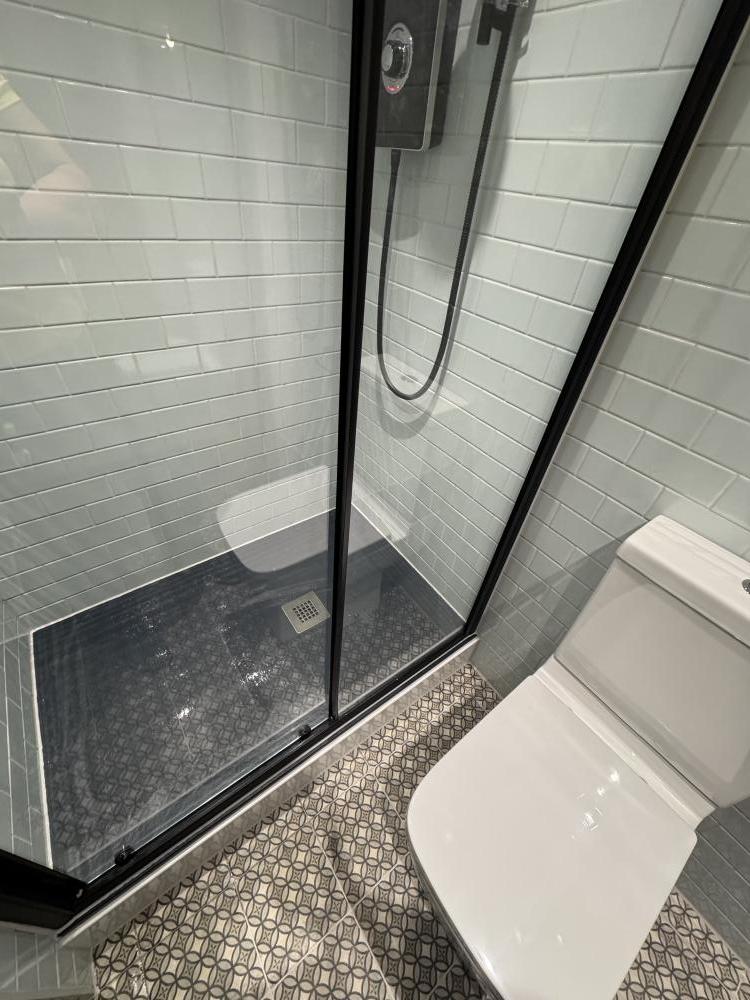 Shower room just recently completed. Everything brand new, walls tiling, plumbing. West End.
